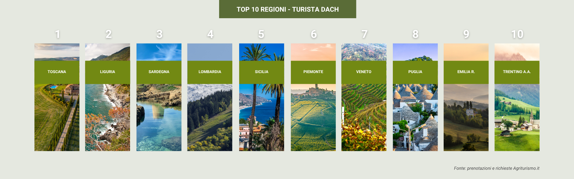 Nella fase di ricerca, i turisti tedeschi si affidano molto al digitale e ai suoi canali: newsletter, guide online e portali specializzati sono le loro principali fonti di ispirazione, e oltre il 70% utilizza piattaforme online come Agriturismo.it per prenotare.
